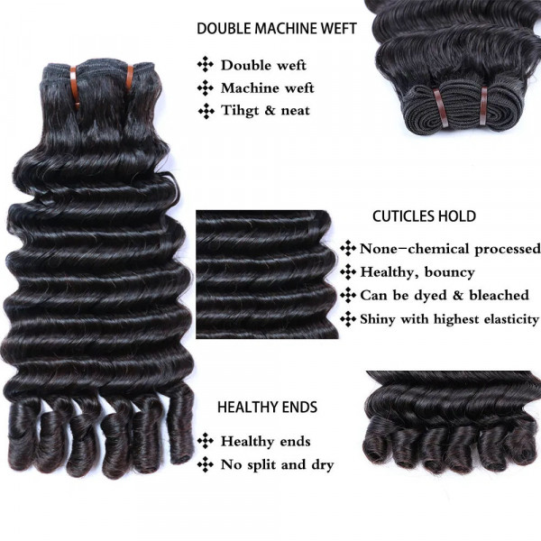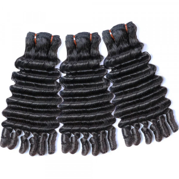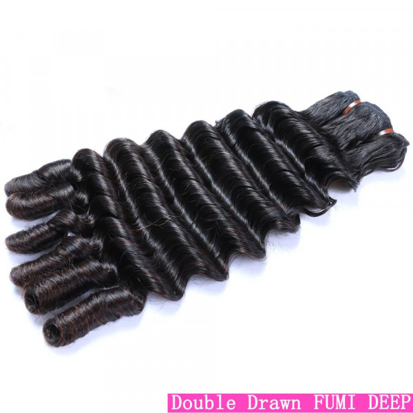 New fumi double drawn Natural Black Vietnamese deep wave Curly Virgin Human Hair Bundles Weaving Extension