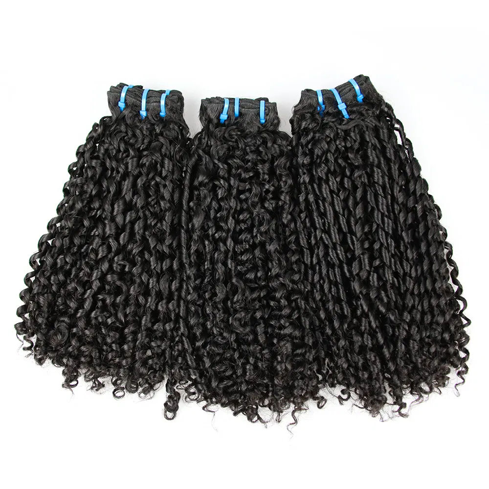 fumi double drawn Natural Black Vietnamese pissy Curly Virgin Human Hair Bundles Weaving Extension